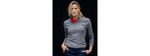 CB DryTec~Moisture wicking and 35+ UPF~Solid~Self fabric mock neck~Exposed half zip~Forward angled shoulder seaming~Binding at collar and partial bottom hem~CB Pennant emb at back half moon~Imported