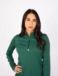 CB DryTec 50+~Self-fabric mock with front/back cut-out collar detail~Exposed 1/2 Zip with reflective Tape detail at zipper garage~Design line side body~thumbholes~C&B Pennant heat transfer at back half moon~Moisture wicking~Solid~Imported